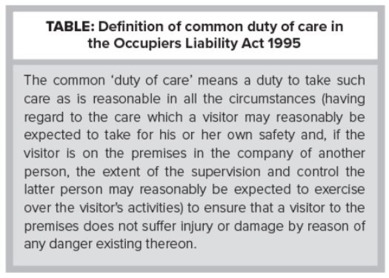 SECTION 3 OF THE OCCUPIERS’ LIABILITY ACT 1995: THE DUTY OF CARE